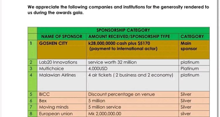 Earlier on Thursday, media reports indicated that FAMA had released a comprehensive list of all financial and in-kind support received for the Malawi Film Awards and Gala.